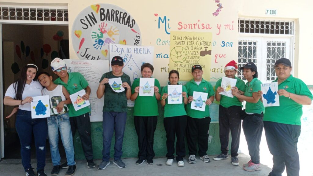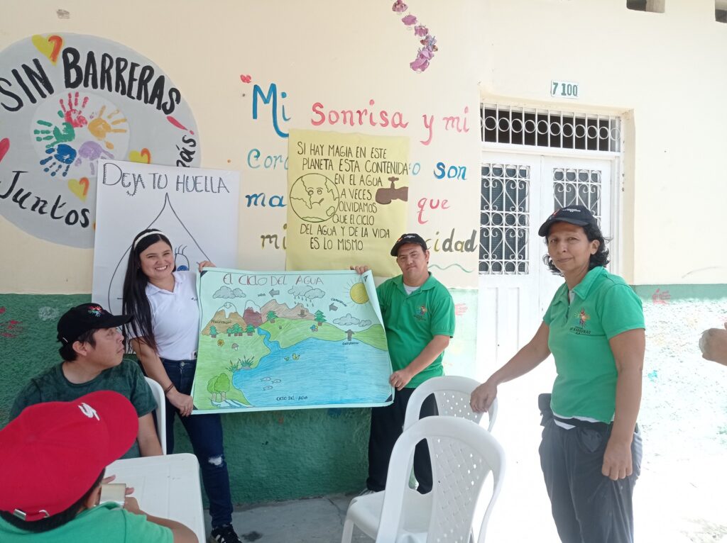 Las empresas de Flandes se suman al apoyo a la inclusión . Aqualia con su profesional Luisa Fernanda Moreno realizó dos sesiones lúdicas sobre el ciclo del agua, su conservación y por último exposición de las carteleras, trabajo en equipo de Pcd y sus cuidadores.